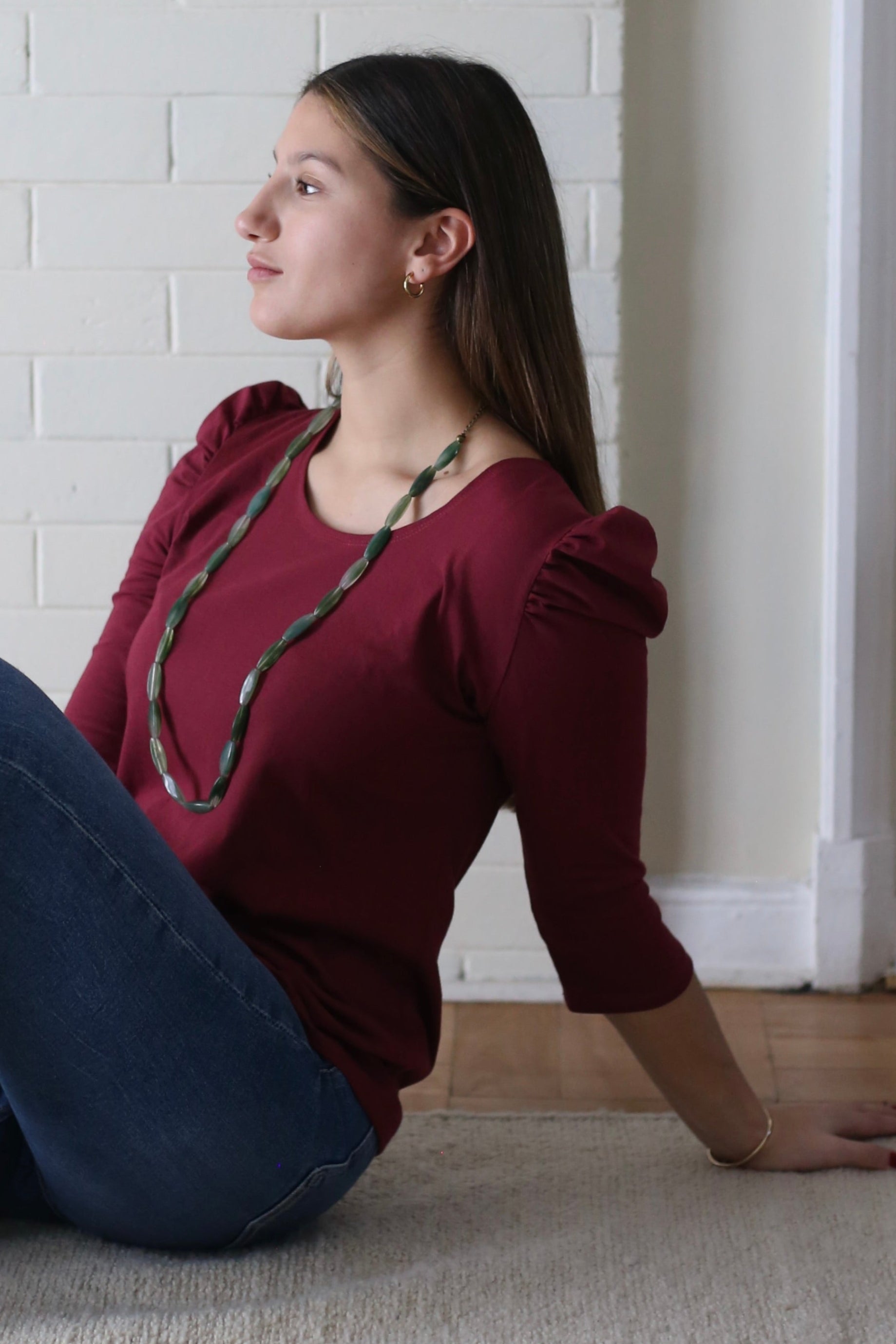 Polera manga 3/4 con detalle de hombros recogidos, un básico para tus tenidas.