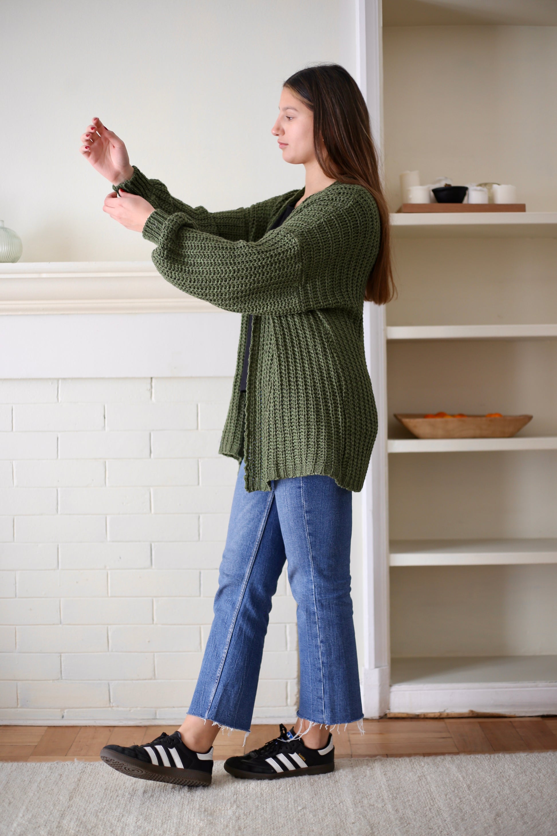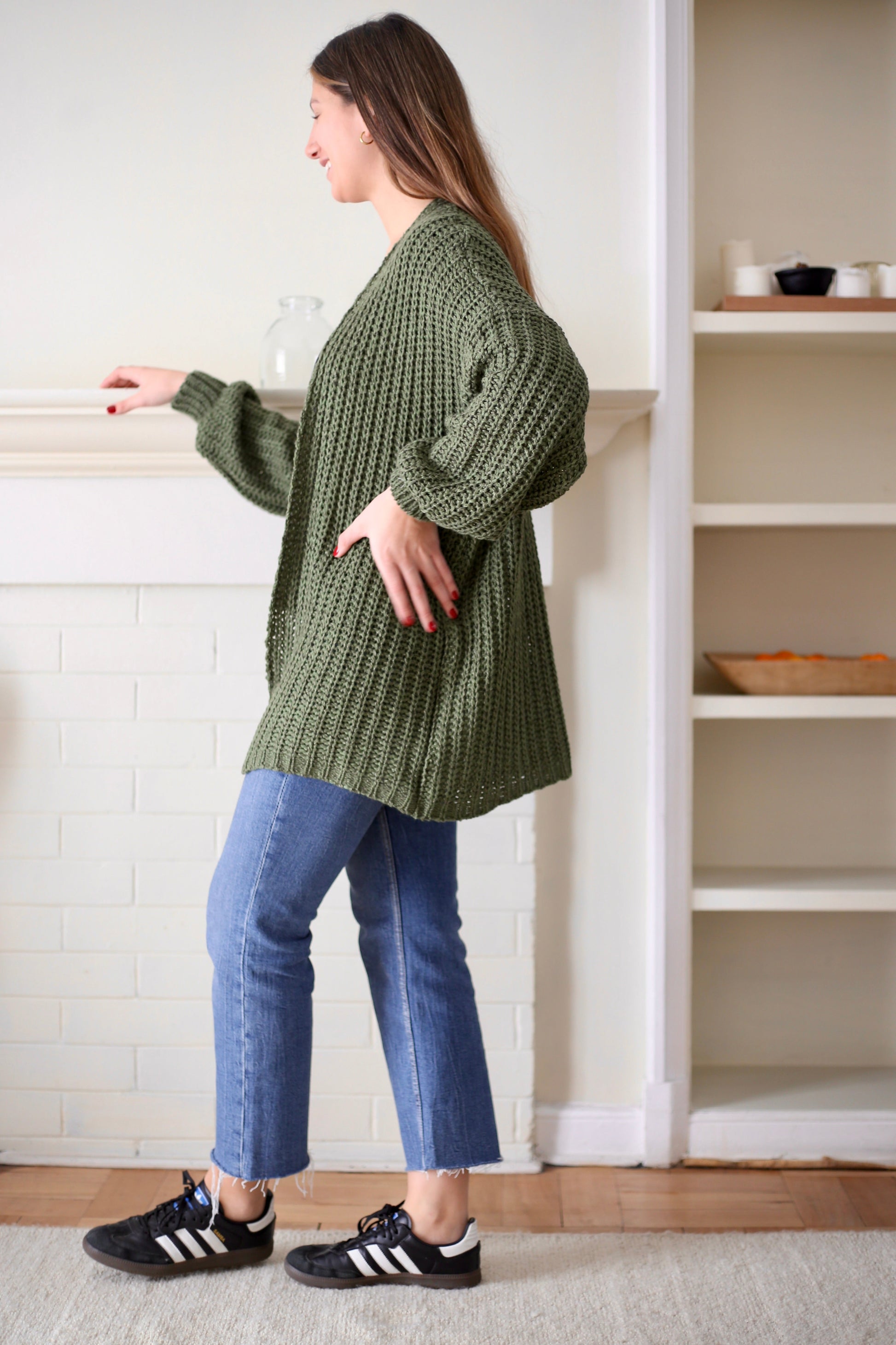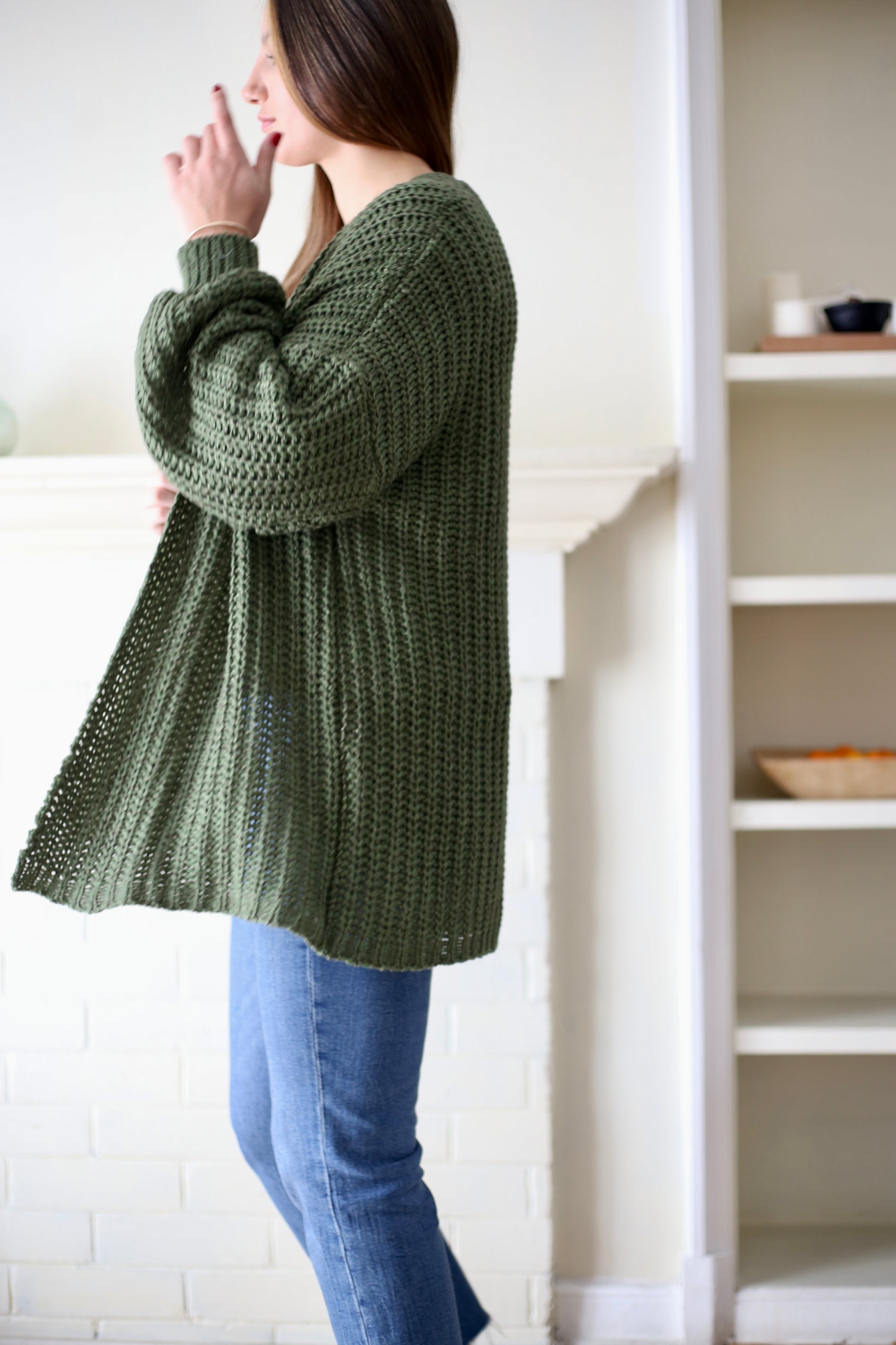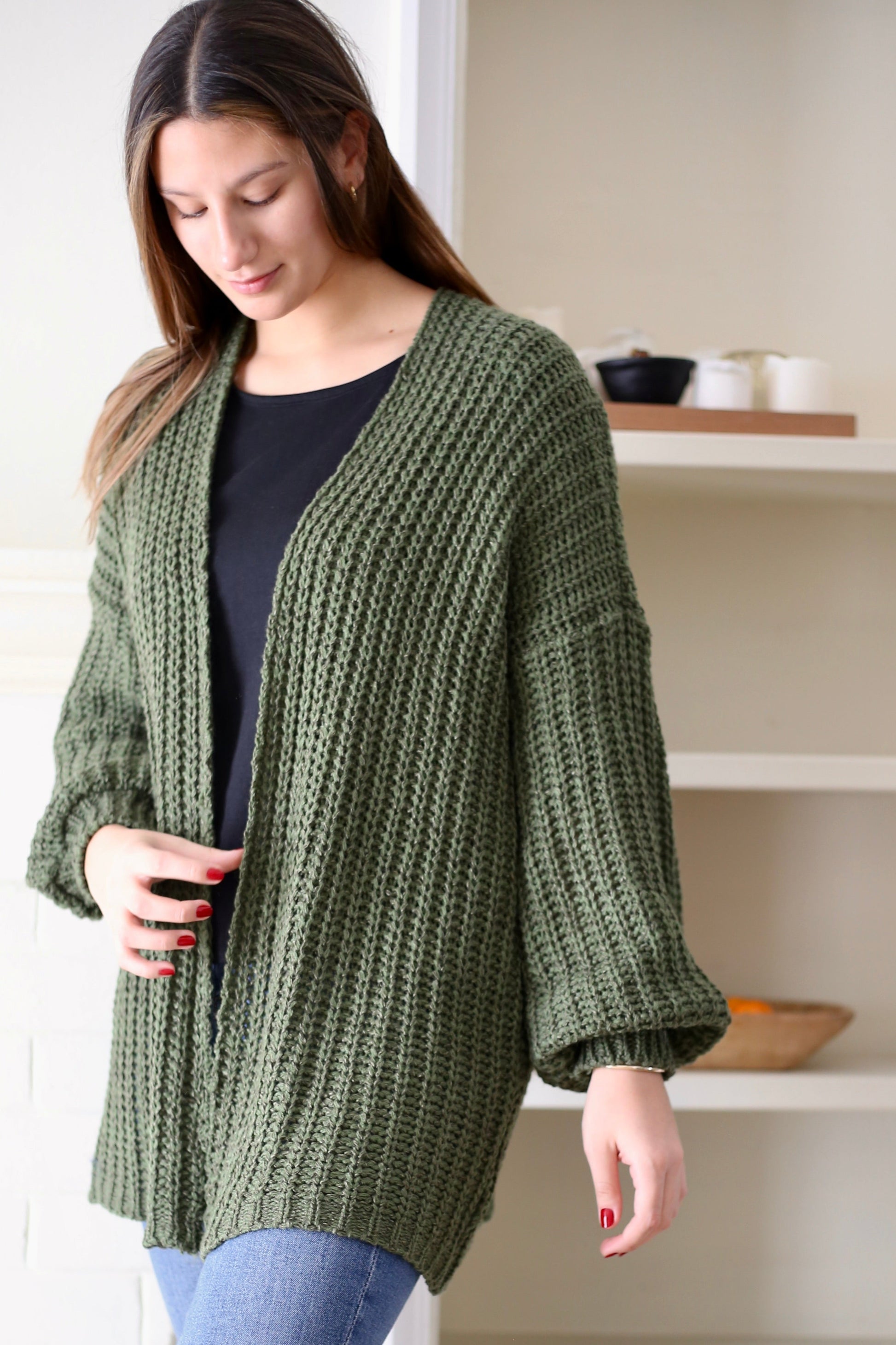 Tejido liviano con un punto abierto y con una manga estilo globo, Violeta es un infaltable en tu closet, su versión de chaleco abierto te entregará un outfit sencillo que combina comodidad y estilo, perfecto para el día a día