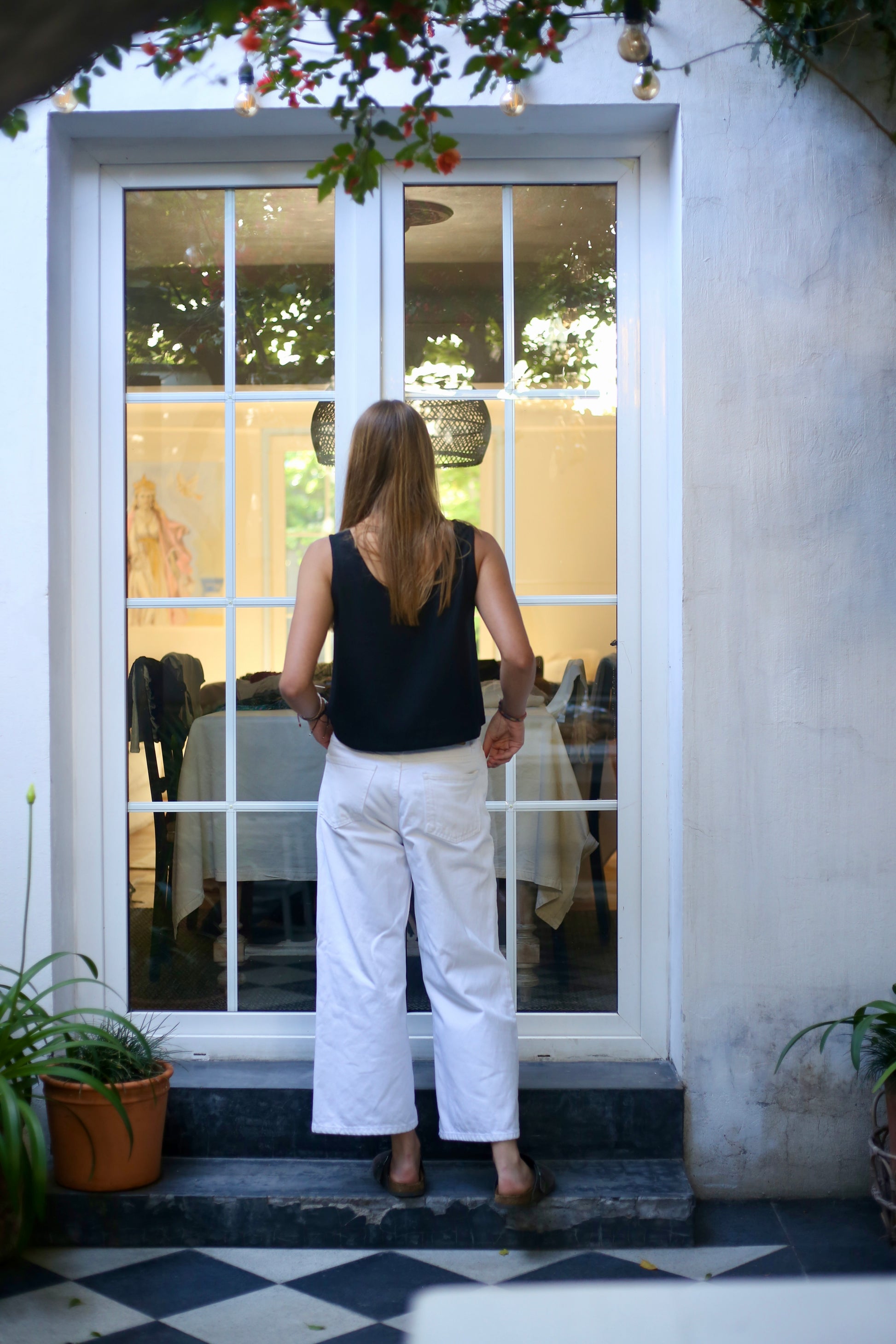 Polera corta sin manga en tela lino algodón, perfecta para estos días de calor. Un básico en tu clóset, combínala con pantalones o faldas tiro alto.