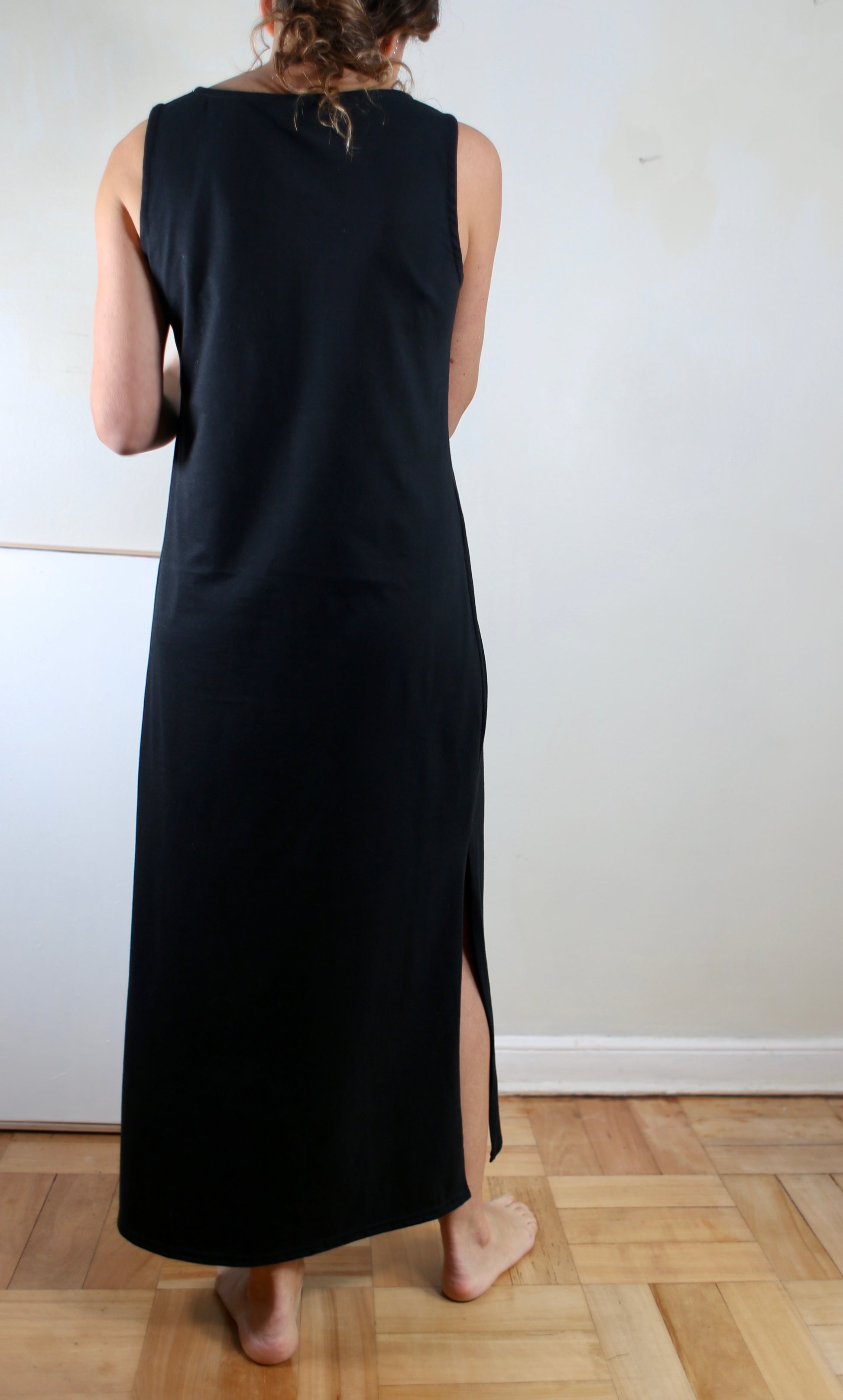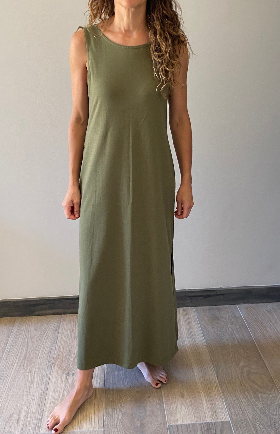 Vestido largo sin manga en algodón jersey, con tajo en ambos costados.